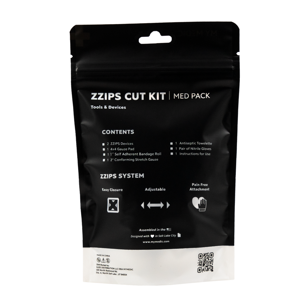 The revolutionary alternative to common sutures and stitches. The ZZIPS MedPack is a compact and portable all-in-one First Aid solution to treat cuts and lacerations where traditional sutures would be needed.